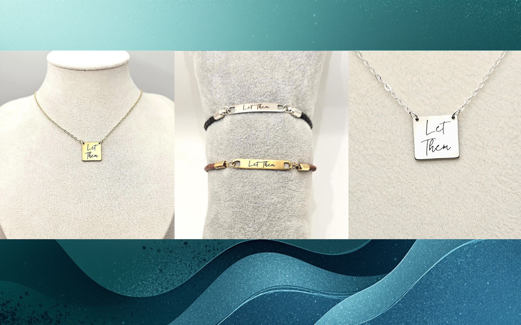 I made “Let Them” engraved bracelets and pendants to remind customers to take it easy and let people do what they do.